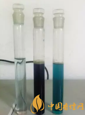 左二黑色瓶為收集煙氣后情況(濃度太高,超出儀器讀數(shù)范圍) 左三藍色瓶為經(jīng)過加水稀釋后做實驗的樣品。