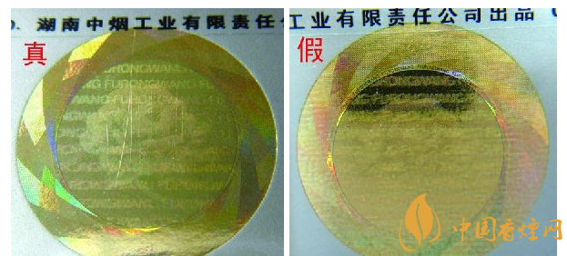 ②迎光觀察激光全息圖案:真品卷煙圖案內(nèi)拼音字母、芙蓉花及“芙蓉王”轉(zhuǎn)換不同角度,都會(huì)呈現(xiàn)不同圖案的切換,且層次清晰、字體完整;假冒卷煙無(wú)論如何轉(zhuǎn)換角度,都無(wú)法達(dá)到完美切換,字體模糊,圖案缺失嚴(yán)重。