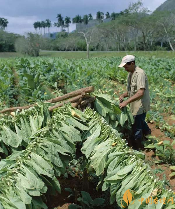 之所以綠斑在古巴雪茄上經(jīng)??梢娛且?yàn)楣虐脱┣训闹圃爝^程中,有吊干(curing)這一環(huán),在煙葉收成以后,為了要除去多余的水份,農(nóng)夫們會(huì)把一雙一雙的煙葉用針線穿起,然后在倉(cāng)庫(kù)中吊制。