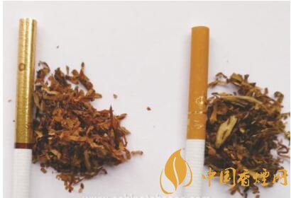 真煙煙絲切絲寬度均勻,煙絲疏松、光澤油潤(rùn)性好,呈檸檬黃色,煙絲結(jié)構(gòu)為純?nèi)~絲;假煙煙絲切絲寬度不勻,光澤油潤(rùn)性較差,煙絲結(jié)構(gòu)為葉絲和少量梗絲,與真品特征存在明顯差異。