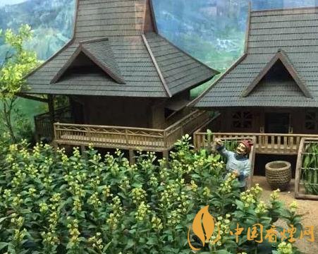 在中國煙草博物館農(nóng)業(yè)館中,有一個以云南吊腳樓為背景設計的雕塑場景,展示了香料煙在當?shù)胤N植(如圖)、采摘、曬制、分級加工的過程。