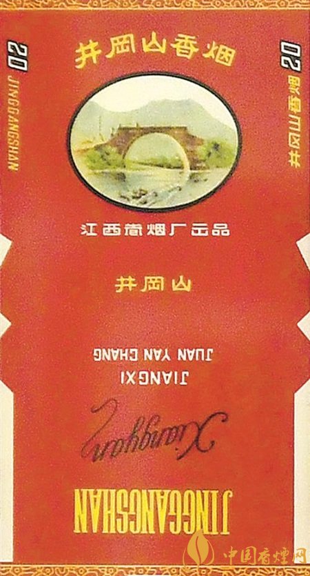 “井岡山”(上世紀50年代出品) 1958年,“井岡山”于江西南昌卷煙廠創(chuàng)牌。因誕生于中國革命的搖籃井岡山而得名。 煙標設計最初以“紅軍會師橋”“黃洋界保衛(wèi)戰(zhàn)紀念碑”為元素,上世紀70年代以后以“井岡山五指峰”為主元素。 井岡山是中國革命的搖籃。那一時期留給后人最為寶貴的財富,就是跨越時空的井岡山精神,這一精神在煙標中得到體現(xiàn)。