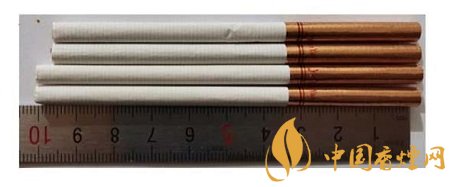 真品卷煙:煙支長度為100mm,濾嘴處有四排激光預打孔,打孔透氣度好。卷煙紙顏色白,手摸煙支飽滿緊實,搭扣處結合完美。煙絲呈現(xiàn)絲條狀,色澤基本一致。