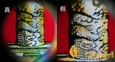 真煙華表柱及圖案立體感強(qiáng),假煙圖案模糊,真假比對(duì)存在明顯差異。