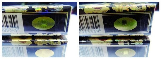 真品防偽技術(shù)具有在圖像3D潛影特征,給人的感覺(jué)好像是文字和圖案潛伏在印刷品當(dāng)中一樣,使用現(xiàn)代超高精準(zhǔn)度的掃描儀和照相制版都不能再呈現(xiàn)的立體效果,防止印刷品被復(fù)制;假煙多采用照相復(fù)制技術(shù),其文字和圖案印在表面無(wú)法呈現(xiàn)出3D效果,與真品防偽標(biāo)志存在顯著差異。
