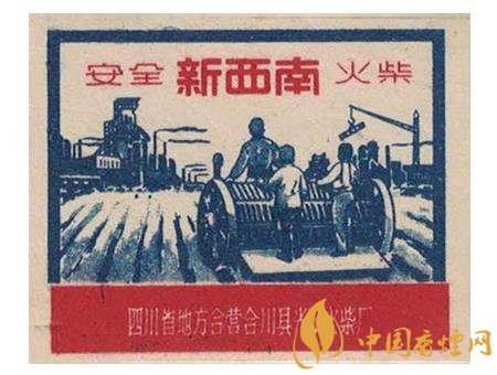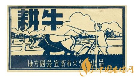 此后的50年代,地方國營宜賓市火柴廠出品的“耕牛”(圖2)火花,突出了一名少數(shù)民族農夫右手扶犁,左手拿著牛鞭驅趕牛兒加油翻耕農田的場景。