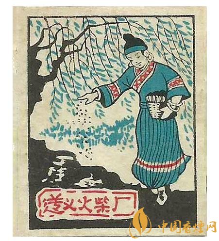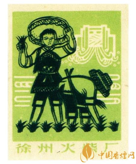 國榮火柴廠出品于同期的“大地牌”(圖3)火花,在朝霞滿天間有白云,以及數(shù)座民居背景的映襯下,突出了一名頭戴斗笠的農夫,一手扶犁一手驅牛辛勤翻耕農田的場面。