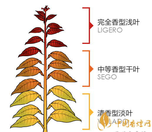完全香型淺葉(LIGERO)——緩慢燃燒的淺葉,具有三級(jí)香氣濃度。