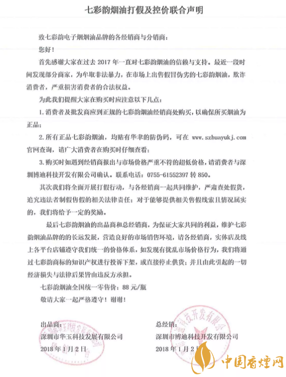 七彩韻煙油打假及控價(jià)聯(lián)合聲明